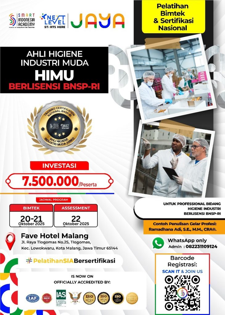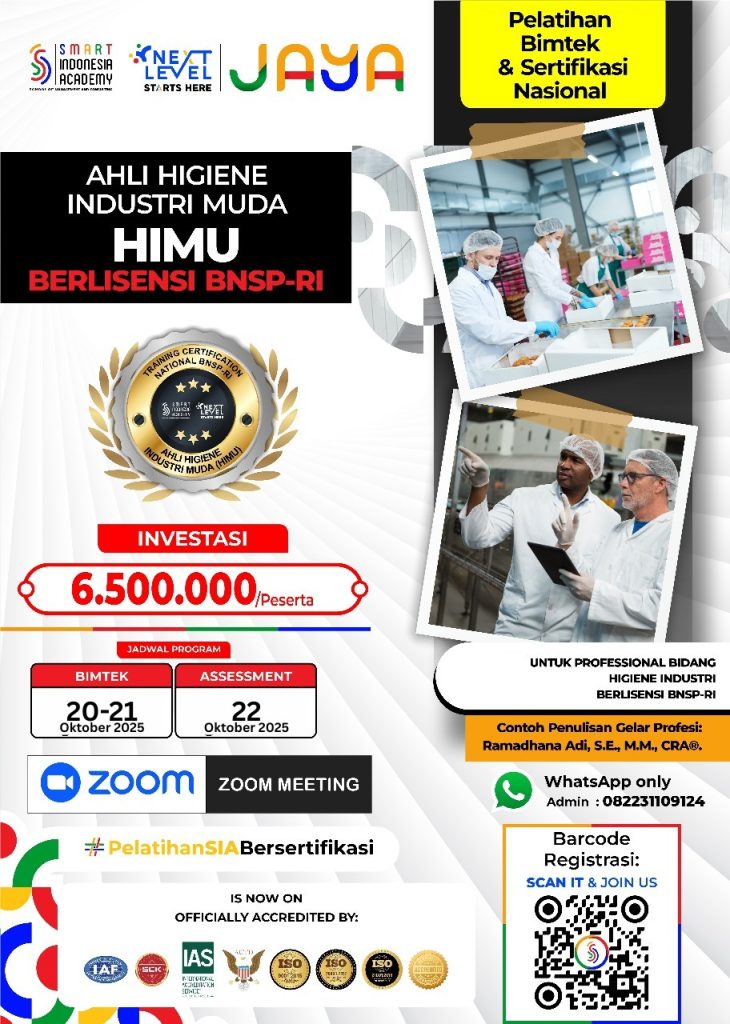 - Pengakuan Nasional: Sertifikasi ini menjadi bukti resmi atas kompetensi seseorang di bidang higiene industri, yang diakui di seluruh Indonesia.